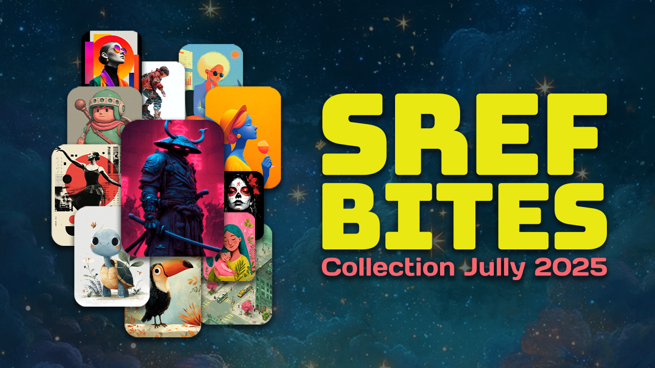 The July 2025 SREF Bites collection spans a wide range of graphic and illustrative styles. What you see here represents only one part of that spectrum. This is simply the first selection. An illustrated opening that introduces one visual approach before the month unfolds further.